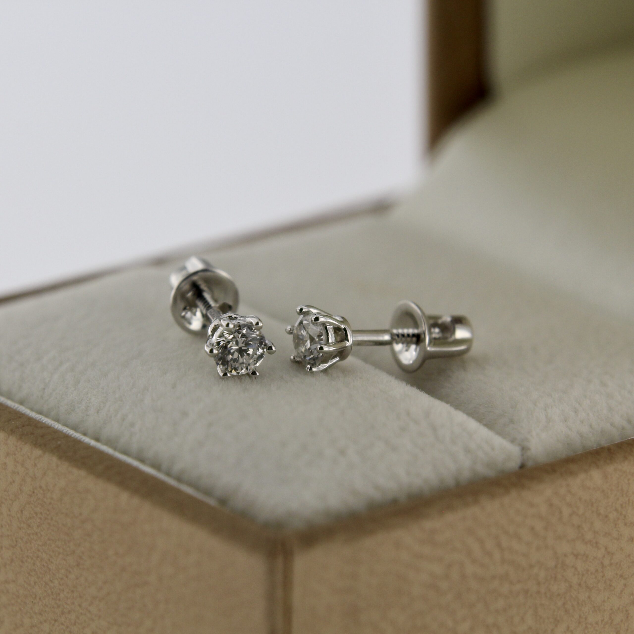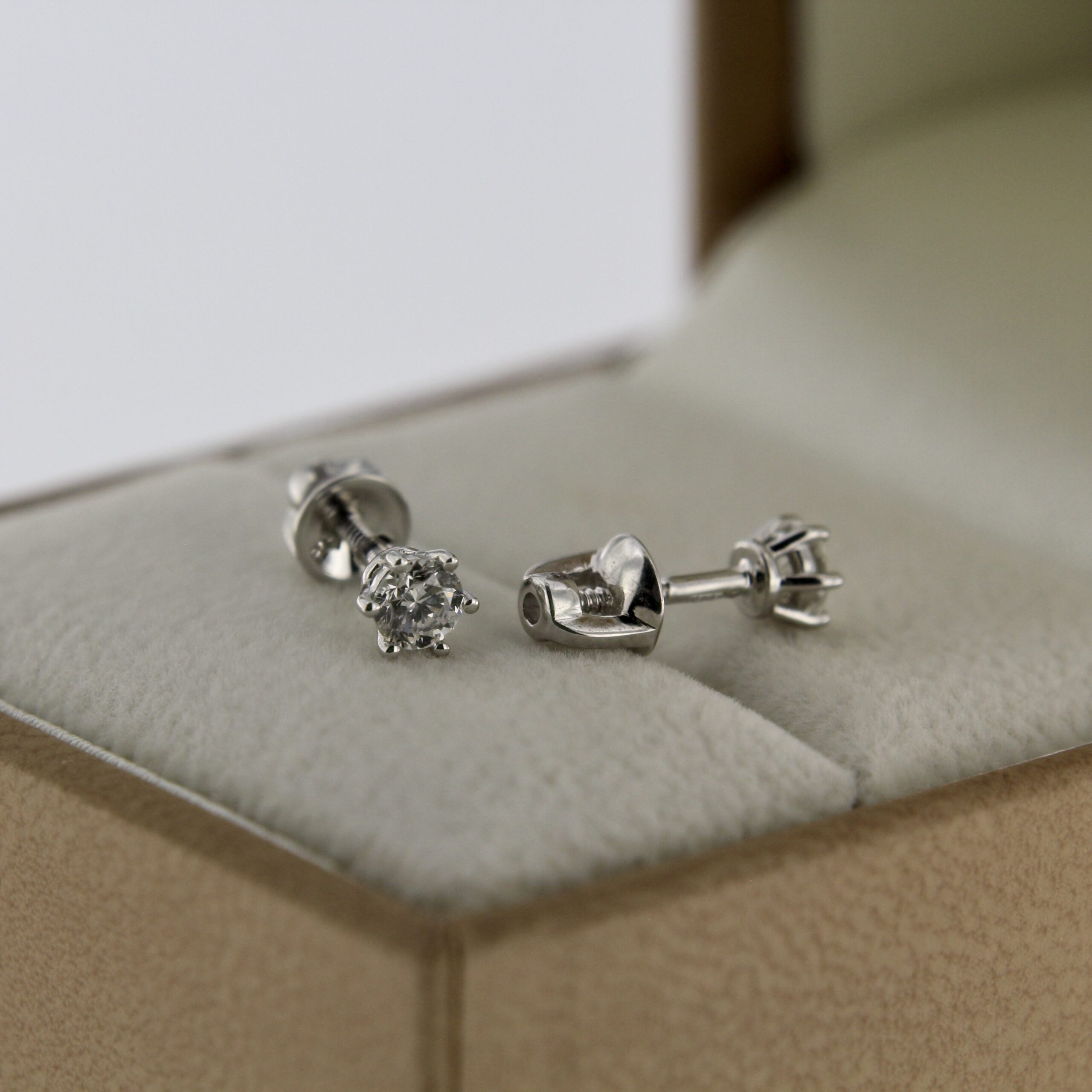 14K white gold diamond stud earrings. Screw lock. Jewellery comes with certificate and arrives in a gorgeous gift box. ART. 2/30-3797