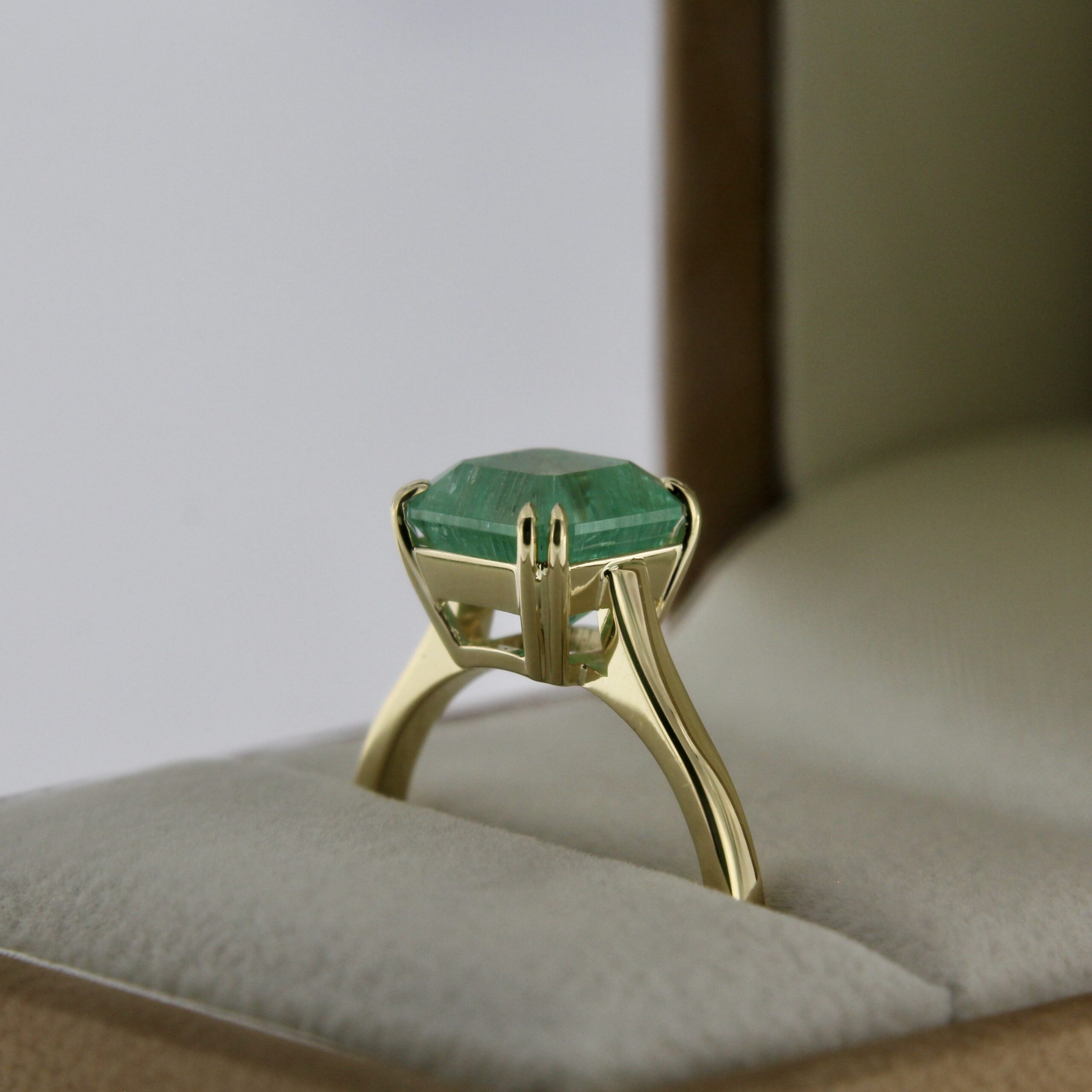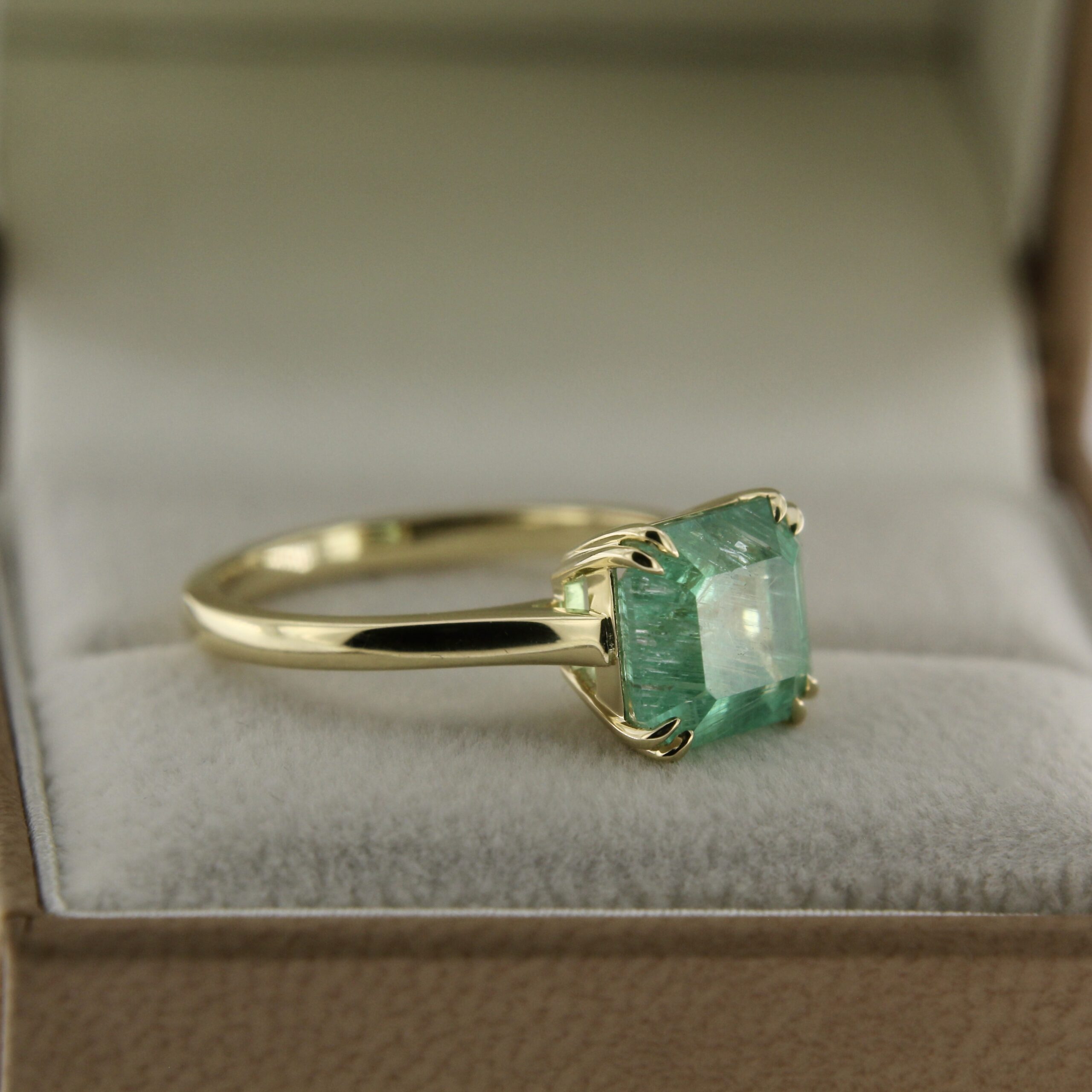 14K yellow gold Emerald ring. Engagement ring. Jewellery will come with certificate and will arrive in a gorgeous gift box. ART. 2/30-4047