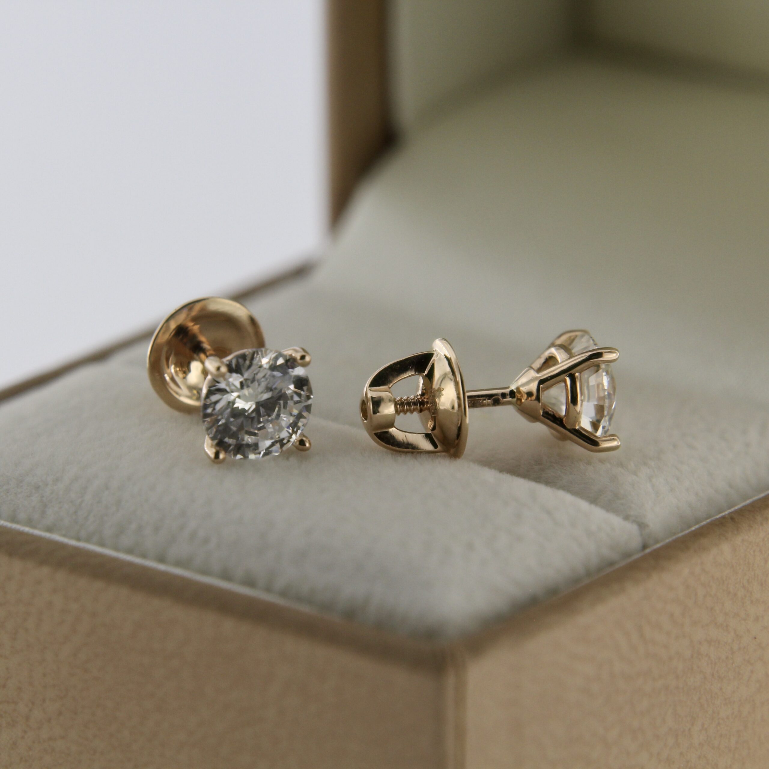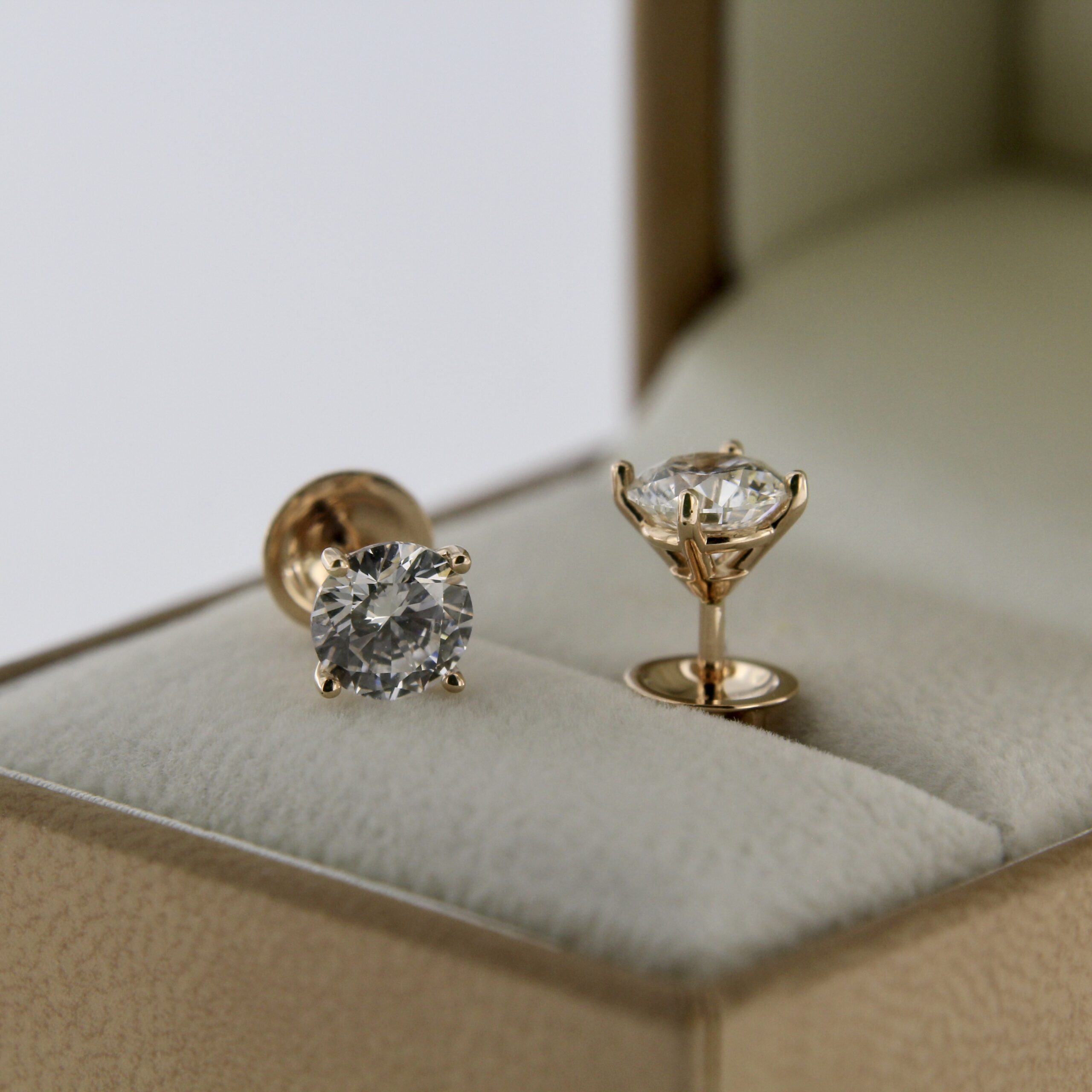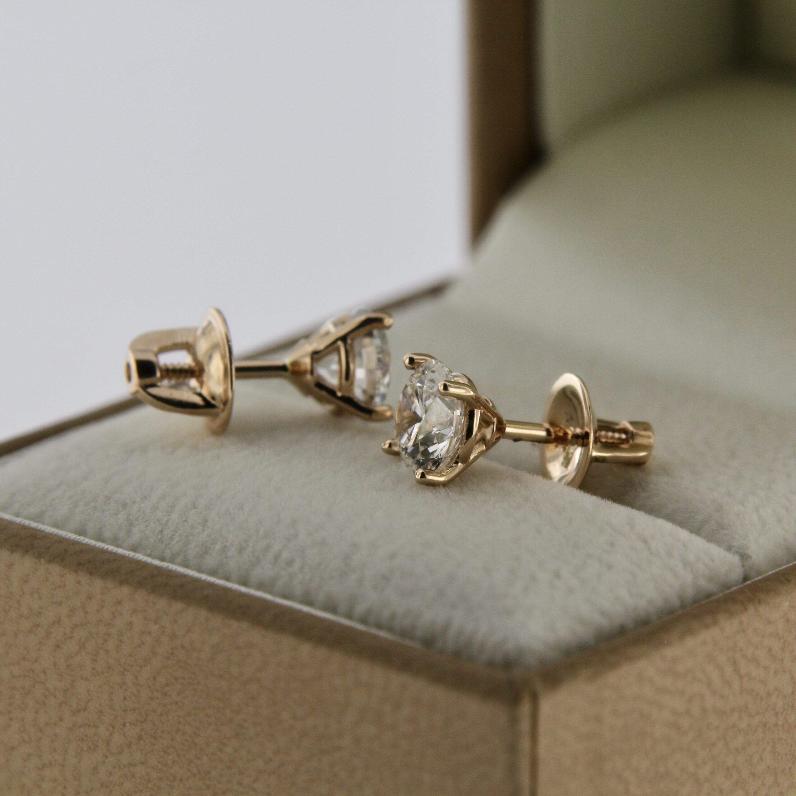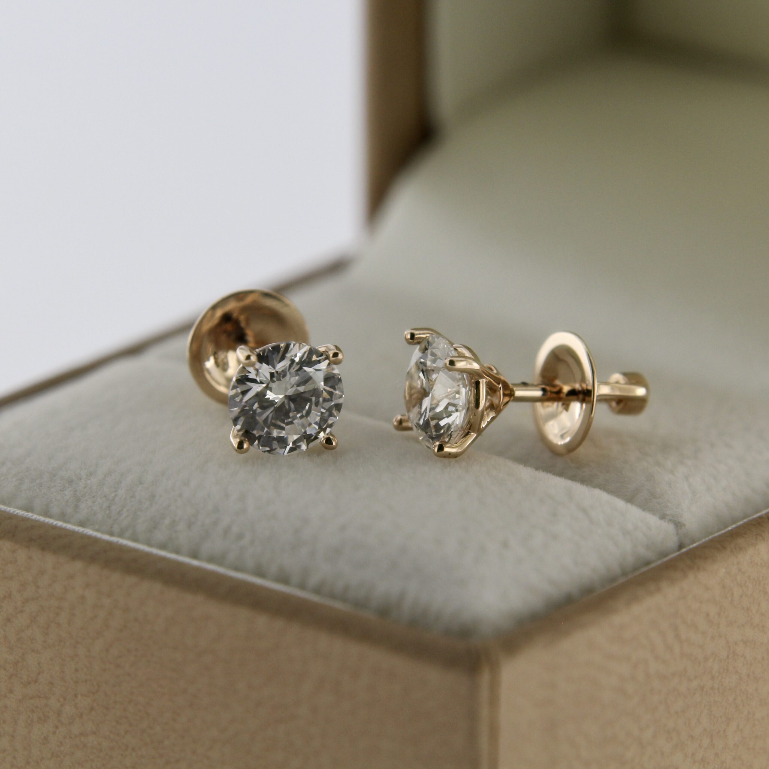 Cерьги-пусеты из красного золота с лабораторно выращенными бриллиантами.