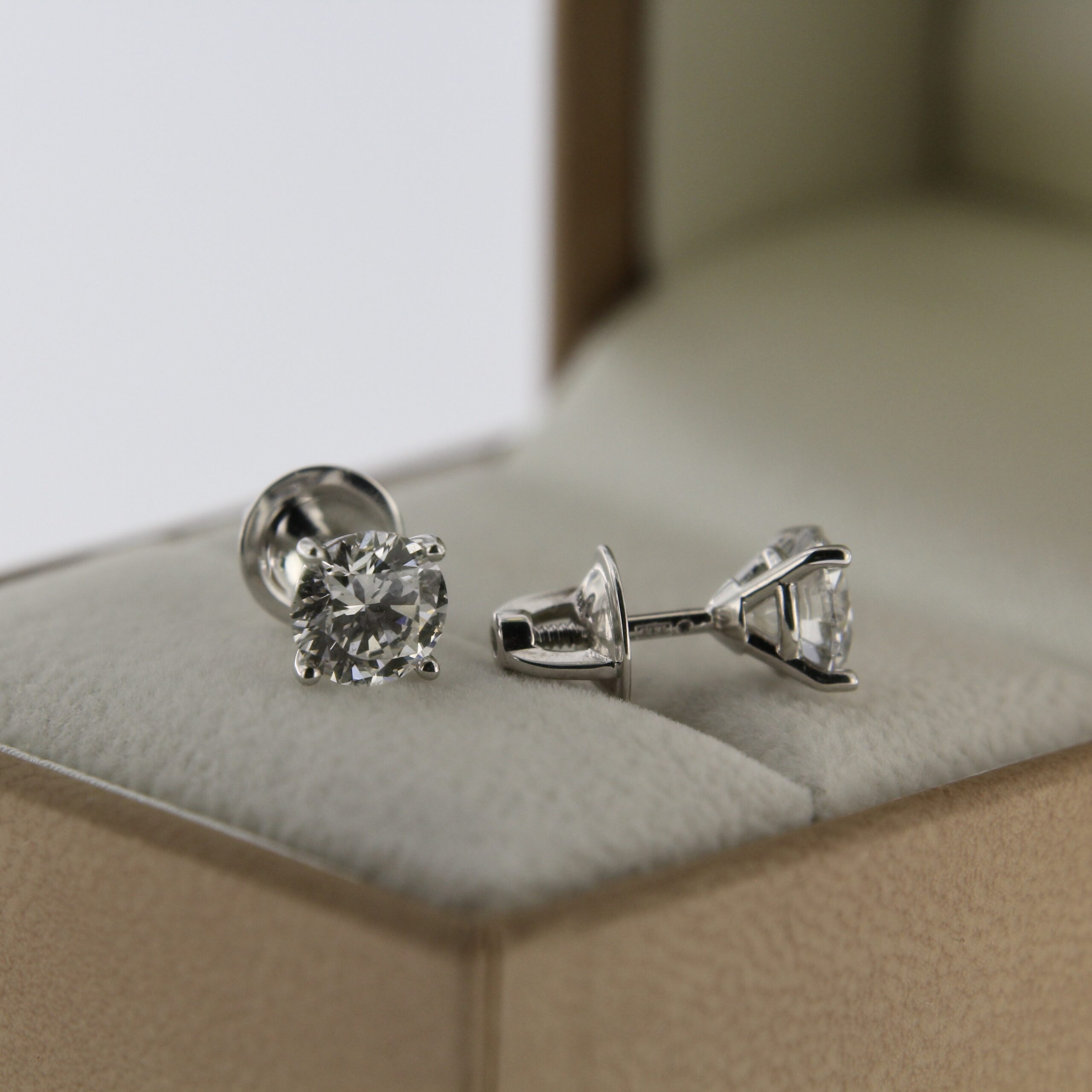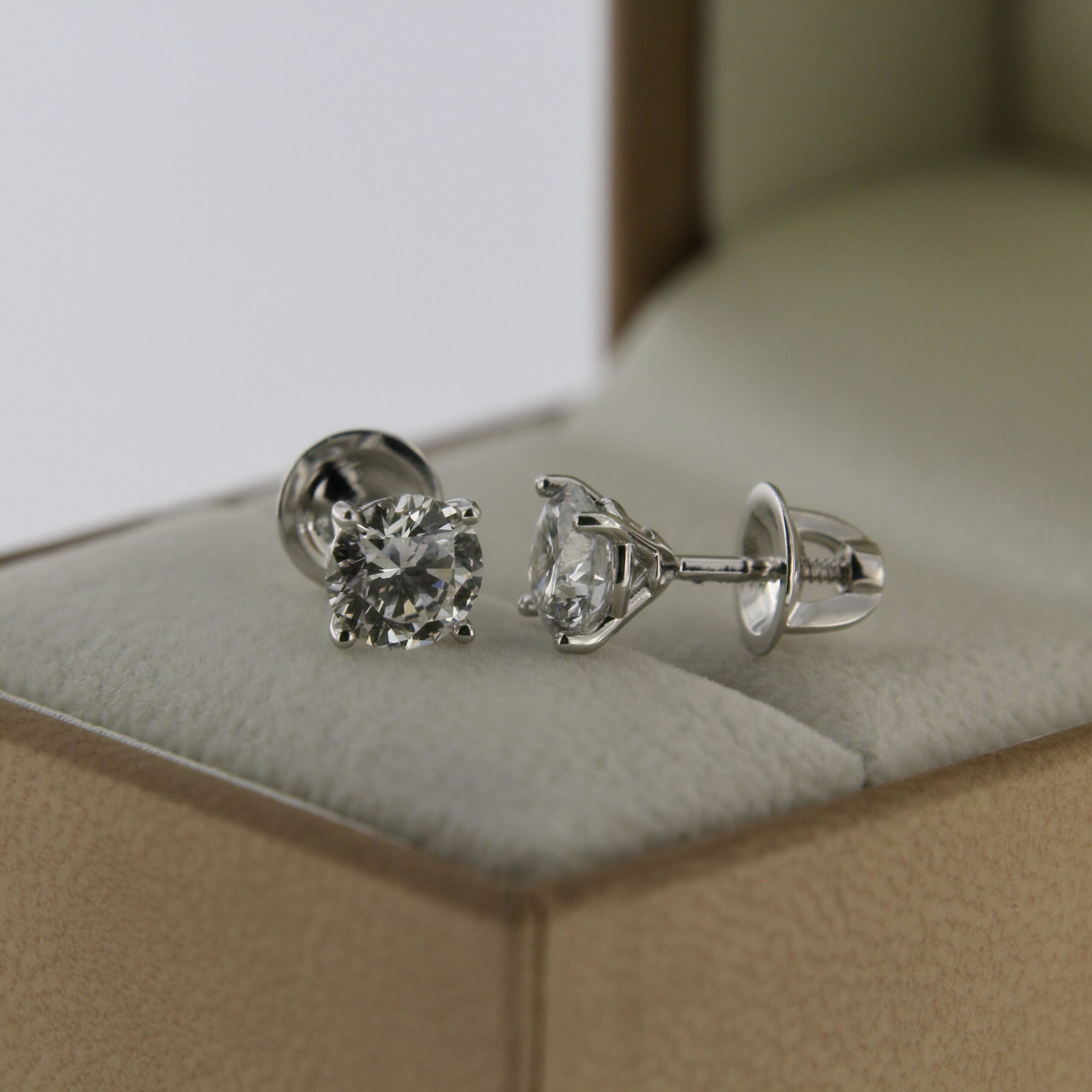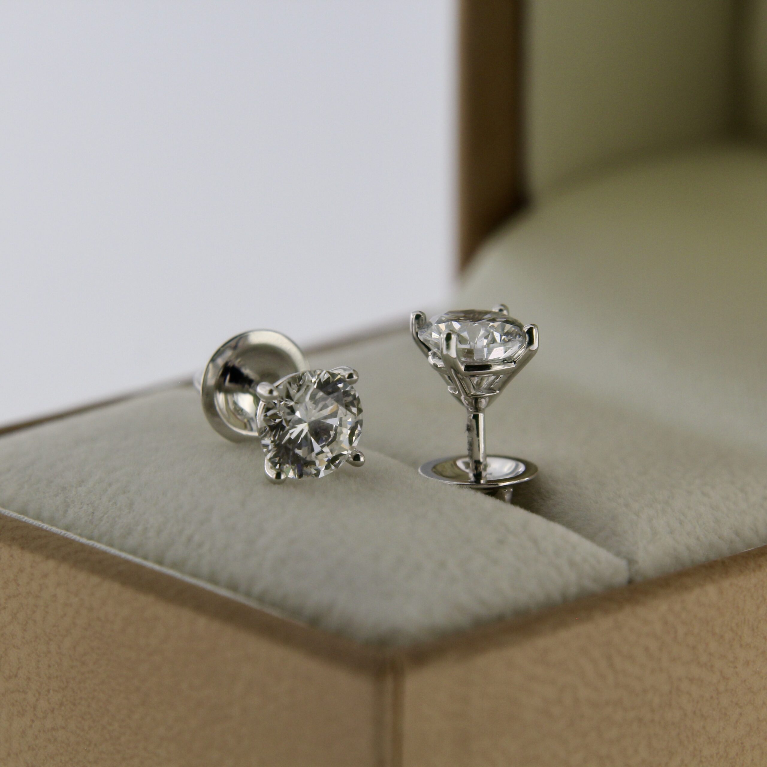 Cерьги-пусеты из белого золота с лабораторно выращенными бриллиантами. Надежный винтовой замок. На камни прилагается сертификат качества. Фирменная упаковка. ART. 2/30-3833