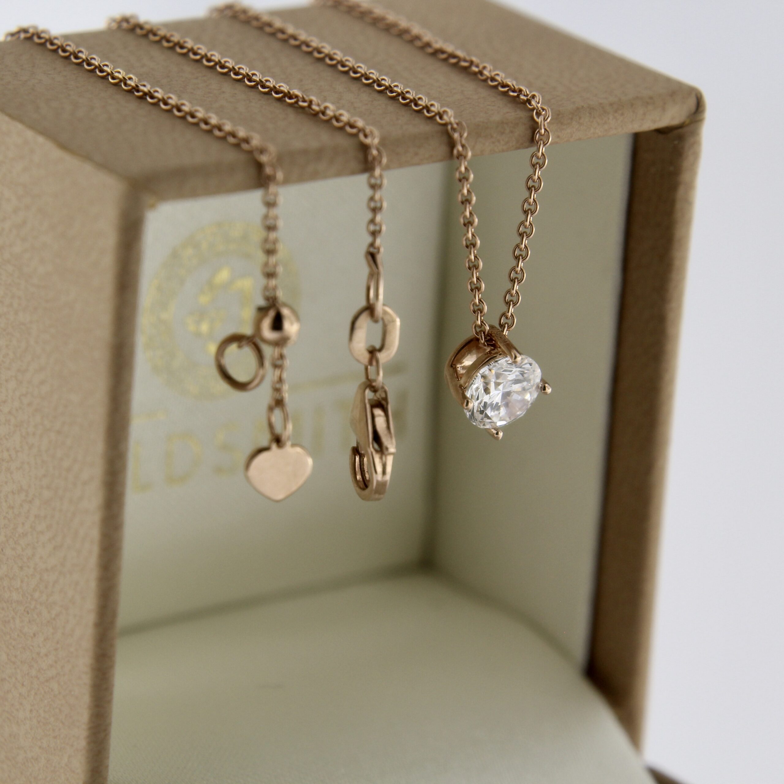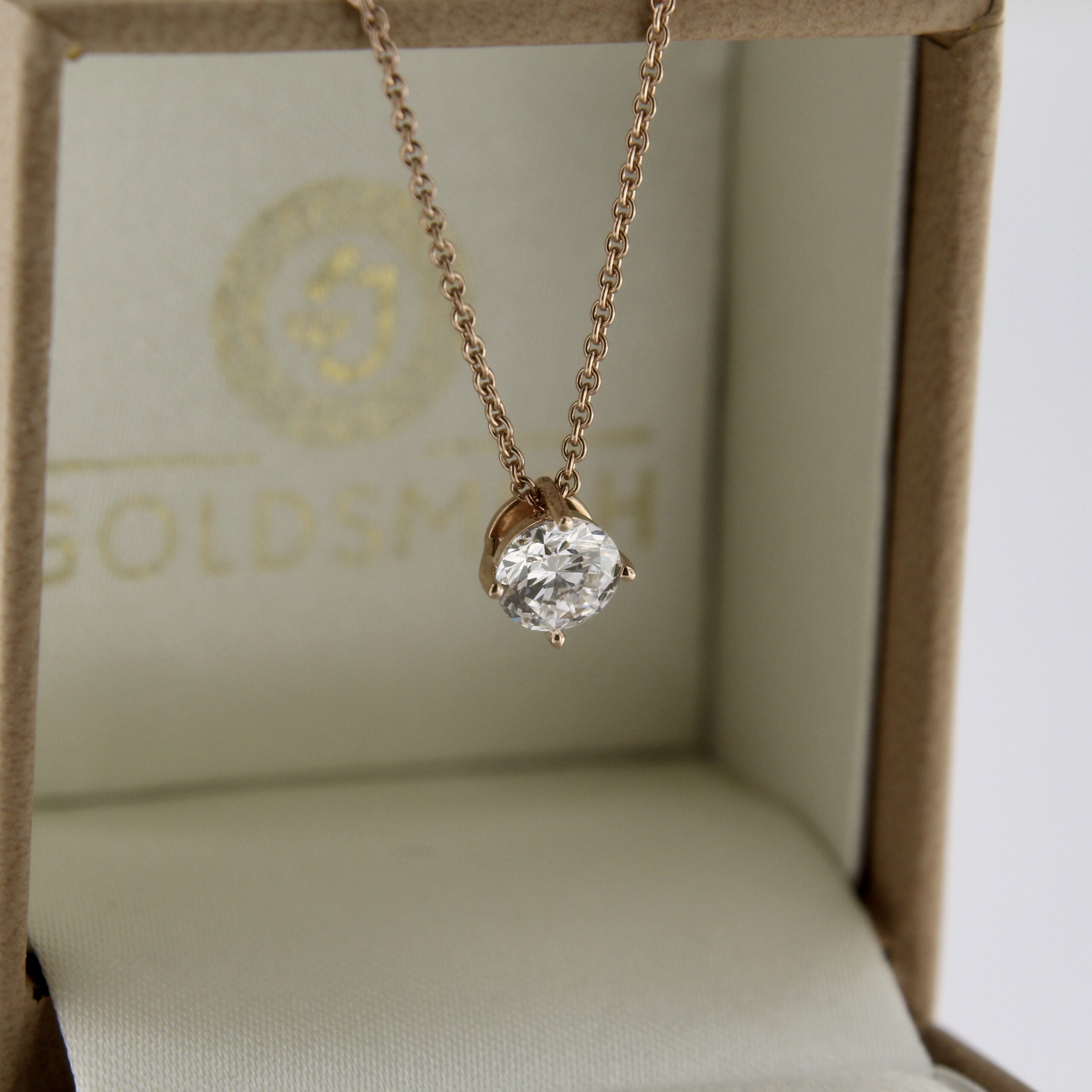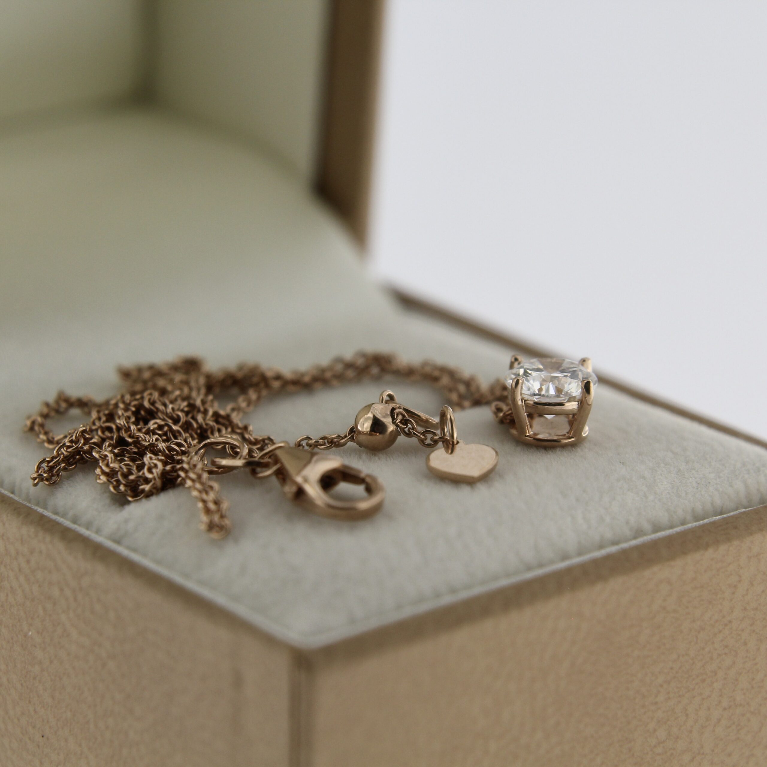 Laboris kasvatatud teemandiga kaelakee punasest kullast. Tootel on kivide sertifikaat ja ilus brändi pakend. ART. 2/30-3898