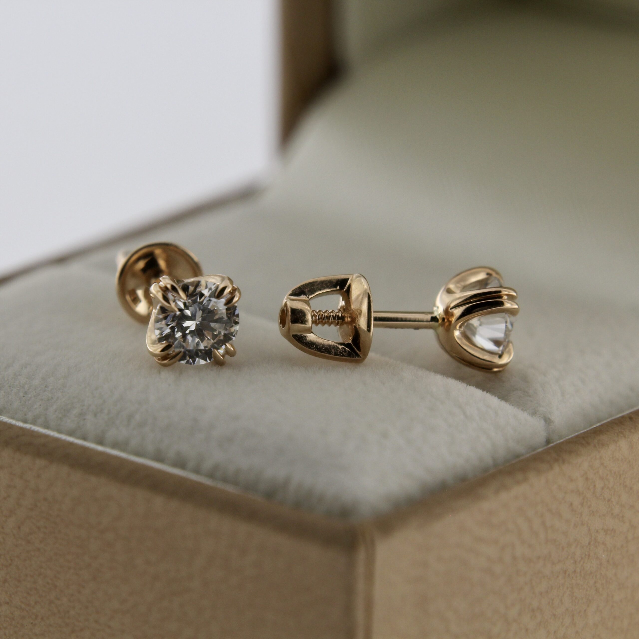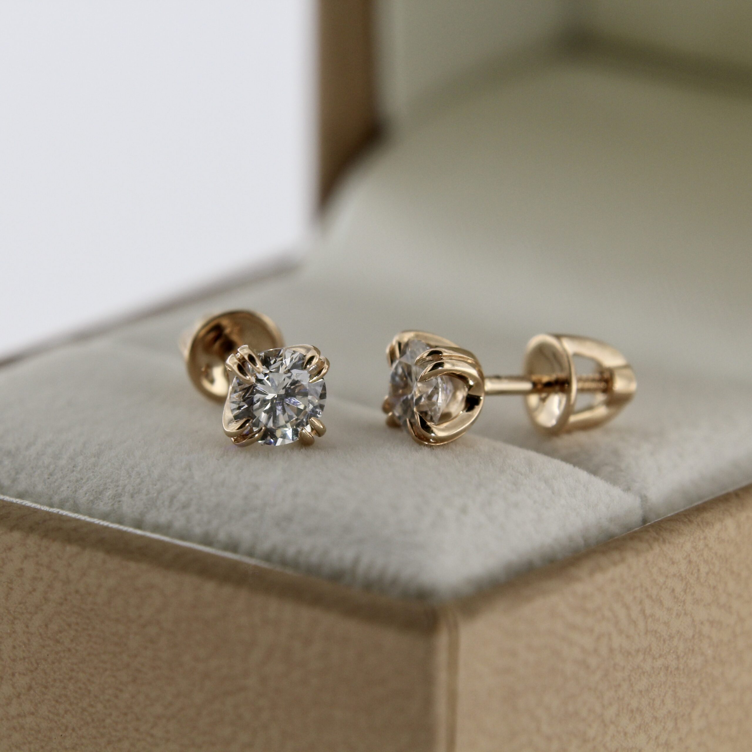 Laboris kasvatatud briljantidega täpp-kõrvarõngad punasest kullast. Kruvilukk. Tootel on kivide sertifikaat ja ilus brändi pakend. ART. 2/30-3916