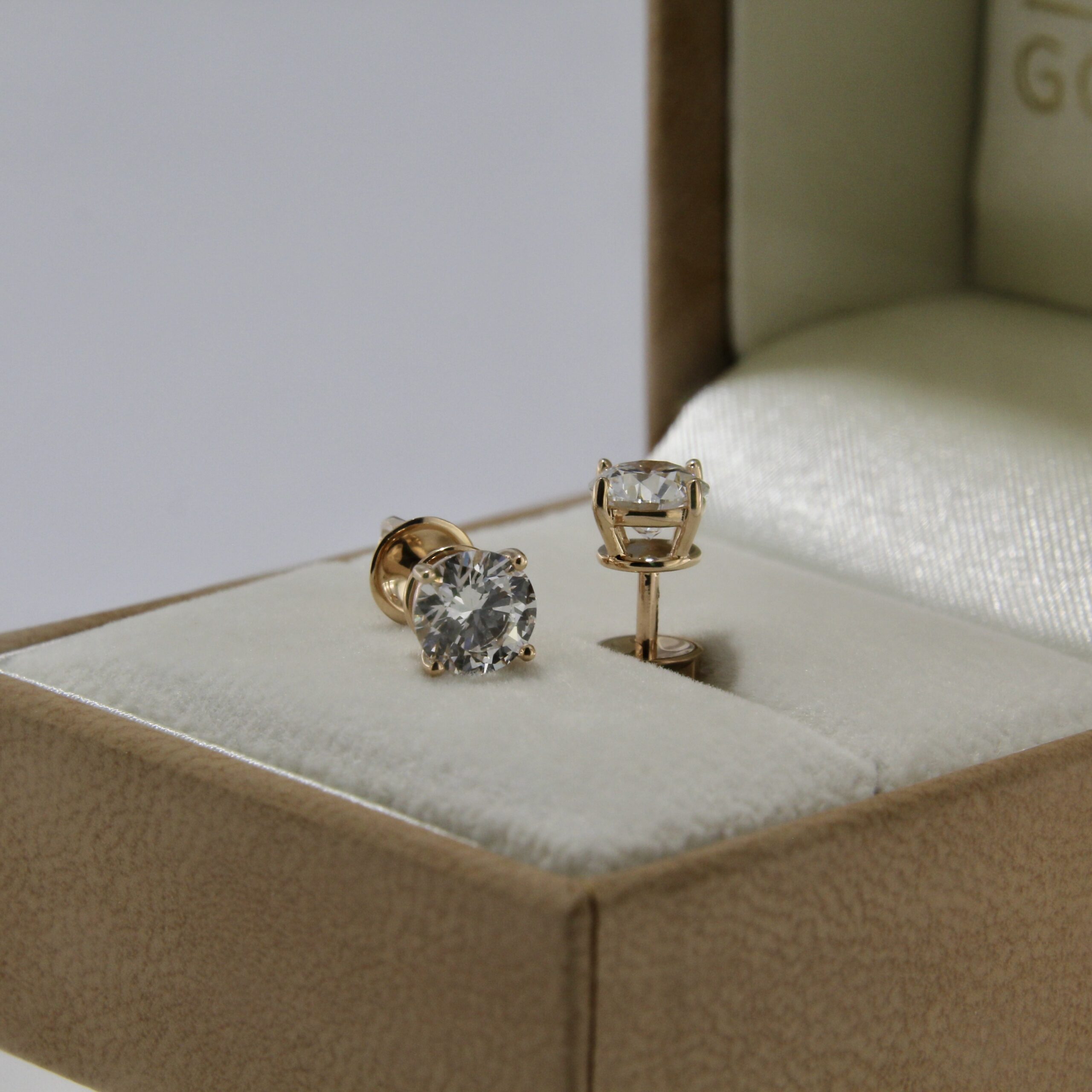 Laboris kasvatatud briljantidega täpp-kõrvarõngad punasest kullast.
