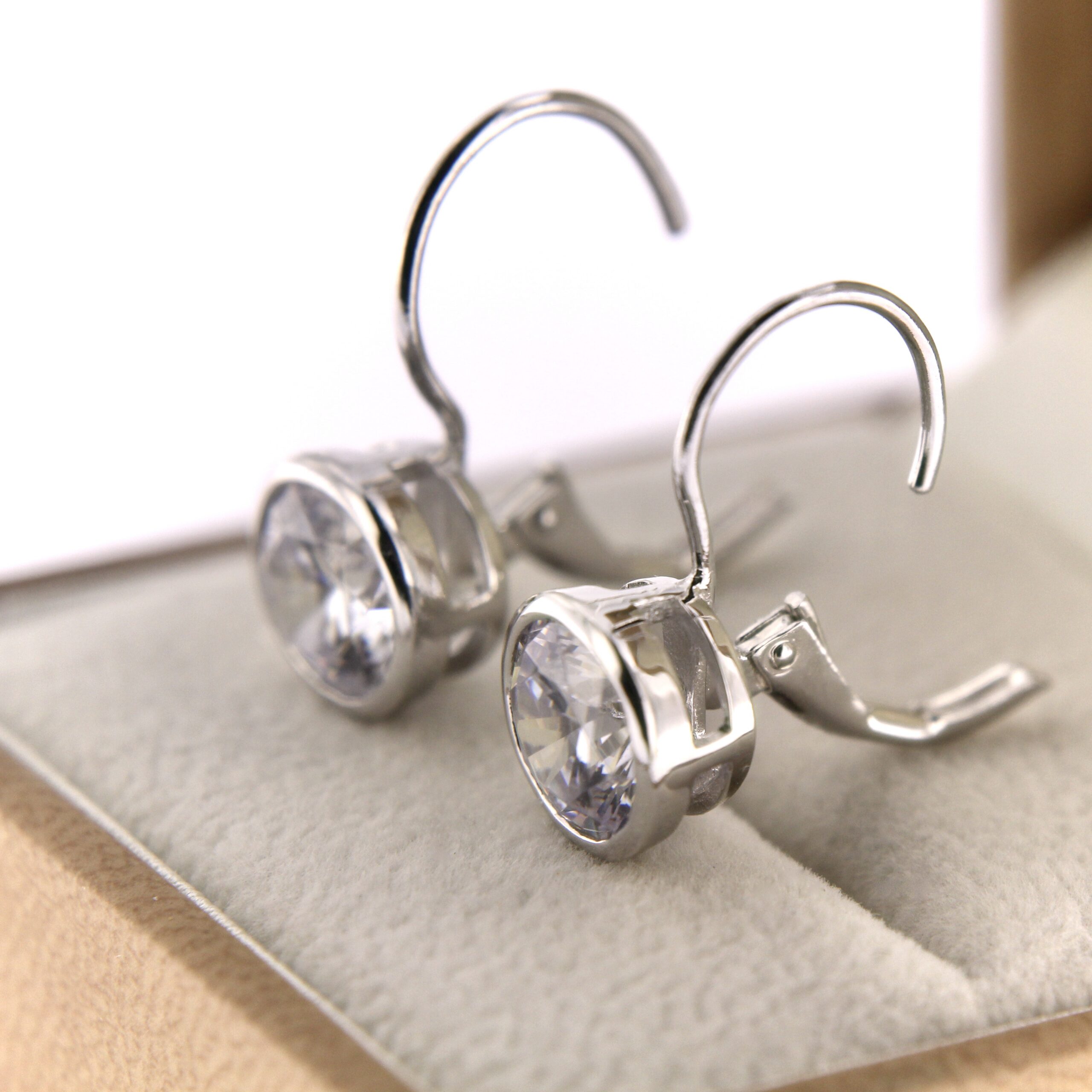 Tsirkoonidega rodeeritud hõbekõrvarõngad.